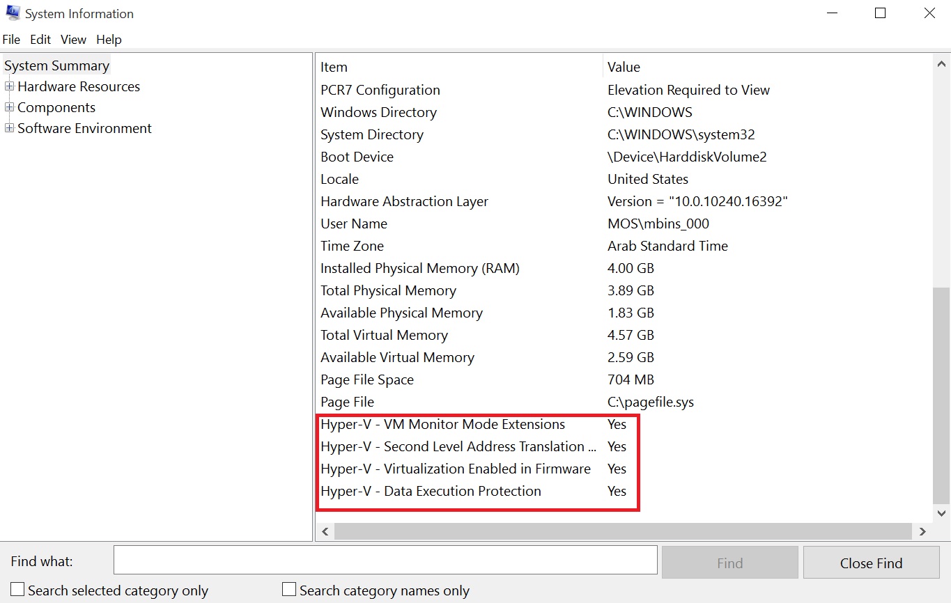 و (ويندوز8, 8.1 وويندوز10 Enterprise - يفضل أن يكون جهازك على الأقل 4GB للذاكرة العشوائية RAM و256 كمساحة للهارد ديسك, ويجب أن يدعم تقنية “Second Level Address Translation “SLAT